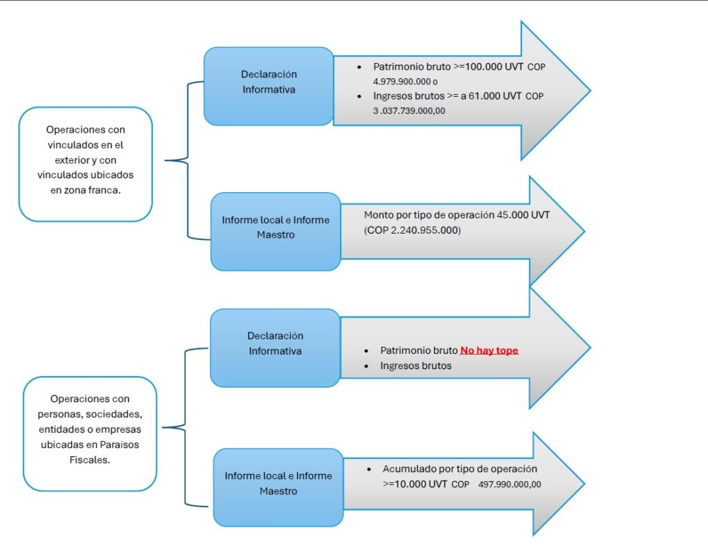 Plazos para presentar obligaciones formales de Precios de Transferencia año gravable 2025 Plazos para presentar obligaciones formales de Precios de Transferencia año gravable 2026 Declaración Informativa, Informe Maestro, Notificación del Reporte País por País e Informe Local Último digito del NITFecha de vencimiento19 de Septiembre de 2026210 de Septiembre de 2026311 de Septiembre de 2026414 de Septiembre de 2026515 de Septiembre de 2026616 de Septiembre de 2026717 de Septiembre de 2026818 de Septiembre de 2026921 de Septiembre de 2026022 de Septiembre de 2026 Informe País por País: Independientemente del Número de IdentificaciónTributaria -NIT, se deben presentar a más tardar el 15 de diciembre de 2026. Recuerde que la no presentación o la presentación extemporánea de estas obligaciones conlleva a cuantiosas sanciones. ¡Permítanos asesorarlo! Obligaciones formales de Precios de Transferencia declaración informativa - Informe Local